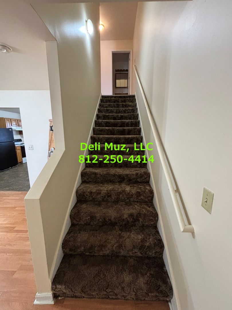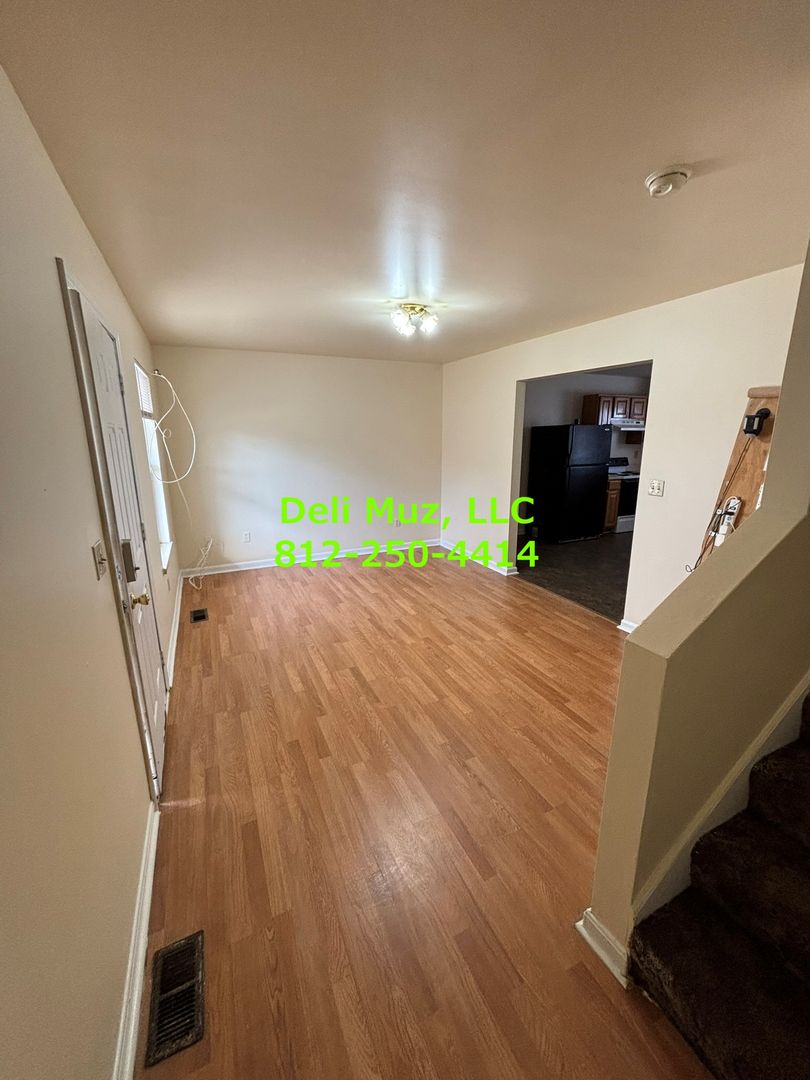 We have a great 2 bedroom, 1.5 bath apartment in a side-by-side triplex. The two bedrooms and a full bath are upstairs; the kitchen, dining room, and living room with a half bath are downstairs. Rooms are all great sizes with large closets both upstairs and downstairs. The apartment was built in 2004, so it has replacement windows, full insulation, high-efficiency furnace and everything else one would want in a three bedroom apartment. It's conveniently located to Berry Plastics, Main Street, and Downtown.